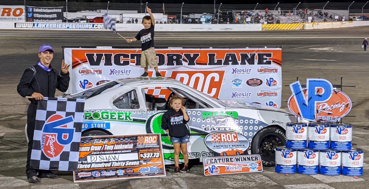 Joe Mancuso of Buffalo, N.Y., topped Tommy Krawczyk of West Seneca, N.Y., in an exciting Super Stock Series event. Mancuso joined Emerling winning the Tribute to Tommy Druar and Tony Jankowiak at two different tracks. Andy Cryan of Hamburg, N.Y., finished third. Tommy Barron of Ontario, N.Y., finished fourth and Trevor Catalano of Ontario, N.Y., rounded out the top-five. D.J. Shaw of Waverly, N.Y., scored his second straight Four Cylinder Dash Series victory at Lake Erie. Shaw scored $337.73 in honor Tommy Druar and Tony Jankowiak, which was posted by DCH Consultants of Williamsville, N.Y., who specialize in short track consulting. Bob Palmer of Cheektowaga, N.Y., finished second and Briar DIls of Derby, N.Y., finished third. Jason Anasiewicz of Alden, N.Y., finished fourth and Rob Laskowski of Williamsville, N.Y., finished fifth. Laskowski earned a $50 hard charger bonus posted by Bob Woch and Old Man Engineering. Mike Piccirilli of Hamburg, N.Y., Hard Luck; Charles Palmer of Cheektowaga, N.Y., halfway leader and Nick Galusha of Hamburg, N.Y., Hard Luck; Charles Palmer of Cheektowaga, N.Y., halfway leader. Nick Galusha of Williamson, N.Y., and Dave Brunka of Cheektowaga, N.Y., 10th place finish (scoring error) each received $50 from Bob Woch and Old Man Engineering. Bradeon Suffoleotta won the random draw of $73 from Rob Laskowski, which was posted for a B-Main, however, no B-Main was run and all cars were started.