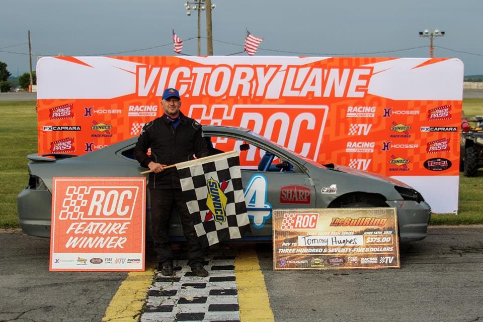 Tommy Hughes of Akron, NY, won the Race of Champions FOAR SCORE Four Cylinder Dash Series event. Gene Purvis of Elima, NY finished second with Patsy Catalano of Ontario, NY finishing third.
